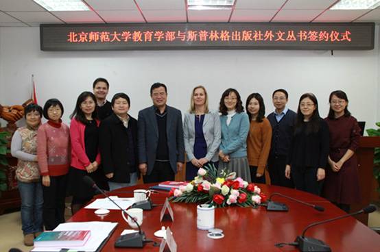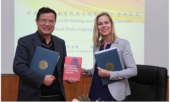 On the afternoon of November 25, 2015, the Faculty of Education and Springer organized a book signing ceremony for a new collection of the English book series Perspectives on Rethinking and Reforming Education at Room 352 of Yingdong Building. Dean SHI Zhongying, Vice Dean YU Shengquan, Editorial Director of Springer Social Sciences and Philosophy Myriam Poort, Executive Editor for Liberal Arts LI Yan, Assistant Editor for Education ZHANG Miao, some FOE faculty who have published in foreign languages and some administrative staffs from the Office of Academic Affairs attended the ceremony. The ceremony was hosted by Vice Dean YU Shengquan.