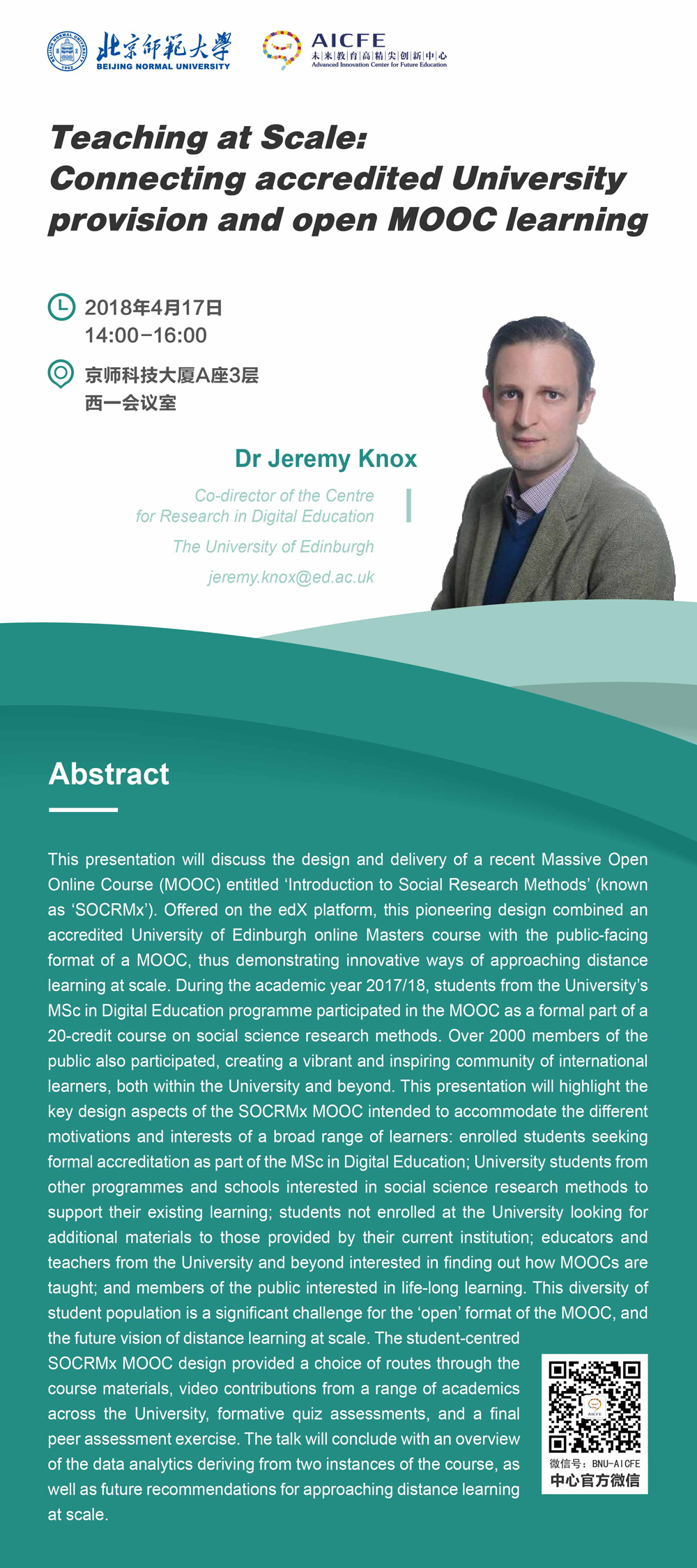 Venue: Meeting Room (West 1), 3rd Floor, A Building, South Campus of Beijing Normal University (京师科技大厦A座3层西一会议室)