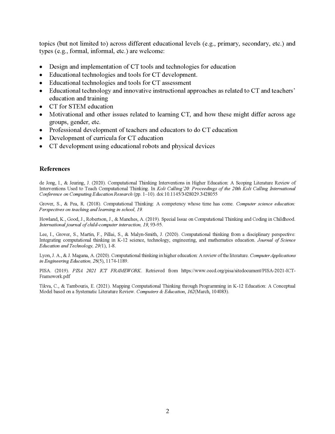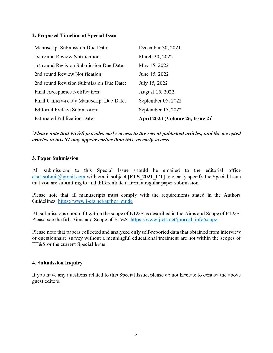 Call for papers on “Integration of Technology to Advance Computational Thinking Education” To be published in Educational Technology & SocietyPublished:2021-04-22 16:45:18 Views:10Call for papers on “Integration of Technology to Advance Computational Thinking Education”To be published in Educational Technology & Society《教育技术与社会》期刊论文征集:“整合技术促进计算思维教育” Call for papers for a Special Issue on “Integration of Technology to Advance Computational Thinking Education” to be published in the Journal of Educational Technology & Society (ET&S). Please see the journal website here: https://www.j-ets.net/ET&S is indexed in SSCI. It had an Impact Factor of 2.086 and 5-Year impact factor of 2.720 according to Thomson Scientific 2019 Journal Citation Report. ET&S is listed #4 in Google Scholar Top Publications in Educational Technology. Important dates:Manuscript Submission Due Date: December 30, 20211st round Review Notification: March 30, 20221st round Revision Submission Due Date: May 15, 20222nd round Review Notification: June 15, 20222nd round Revision Submission Due Date: July 15, 2022Final Acceptance Notification: August 15, 2022Final Camera-ready Manuscript Due Date: September 05, 2022Editorial Preface Submission: September 15, 2022Estimated Publication Date: April 2023 (Volume 26, Issue 2) Please note that ET&S provides early-access to the recent published articles, and the accepted articles in this SI may appear earlier than this, as early-access. Guest editors: Ahmed Tlili, Smart Learning Institute of Beijing Normal University, ChinaDaniel Burgos, Universidad Internacional de La Rioja (UNIR), SpainChee-Kit Looi, National Institute of Education, Nanyang Technological University, Singapore Previous: