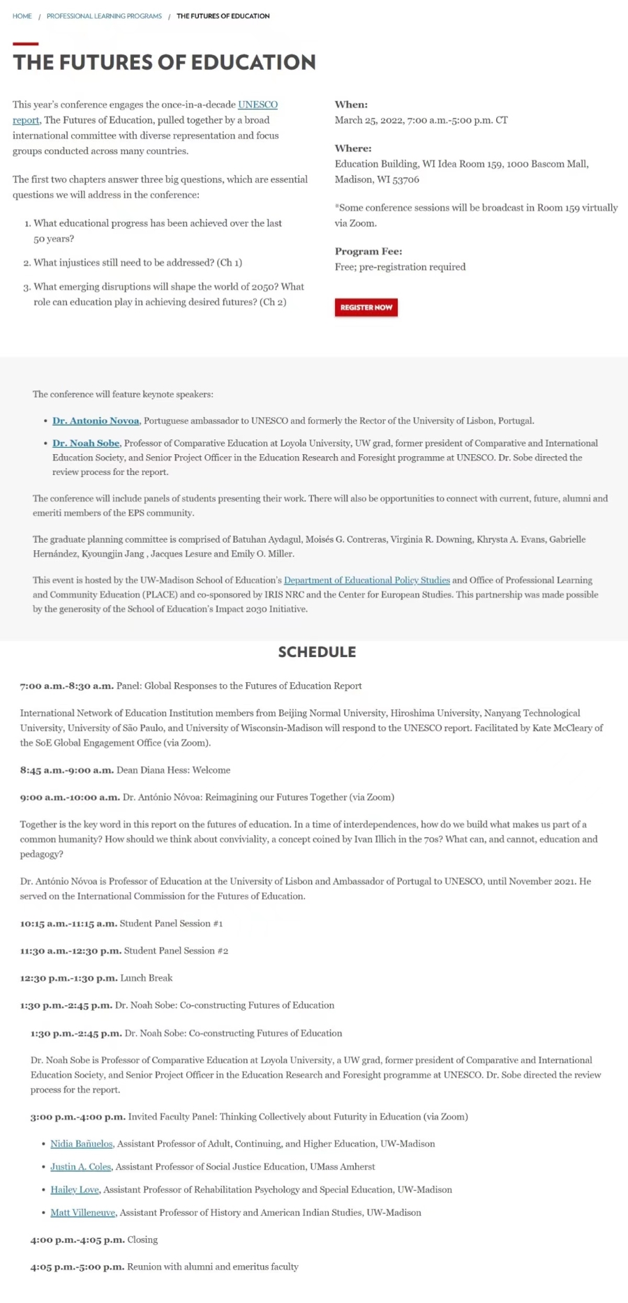 For more information, please visit: The Futures of Education - Professional Learning and Community Education (PLACE)